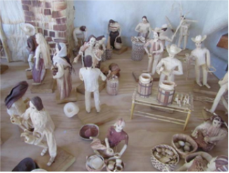 This handcrafted scene made from corn husks (known as totomoxtle) celebrates the richness of traditional Mexican cuisine and daily life. Each figure represents people preparing, cooking, and sharing food. From market vendors to tortilla makers, this folk-art piece honors time-honored practices passed down through generations